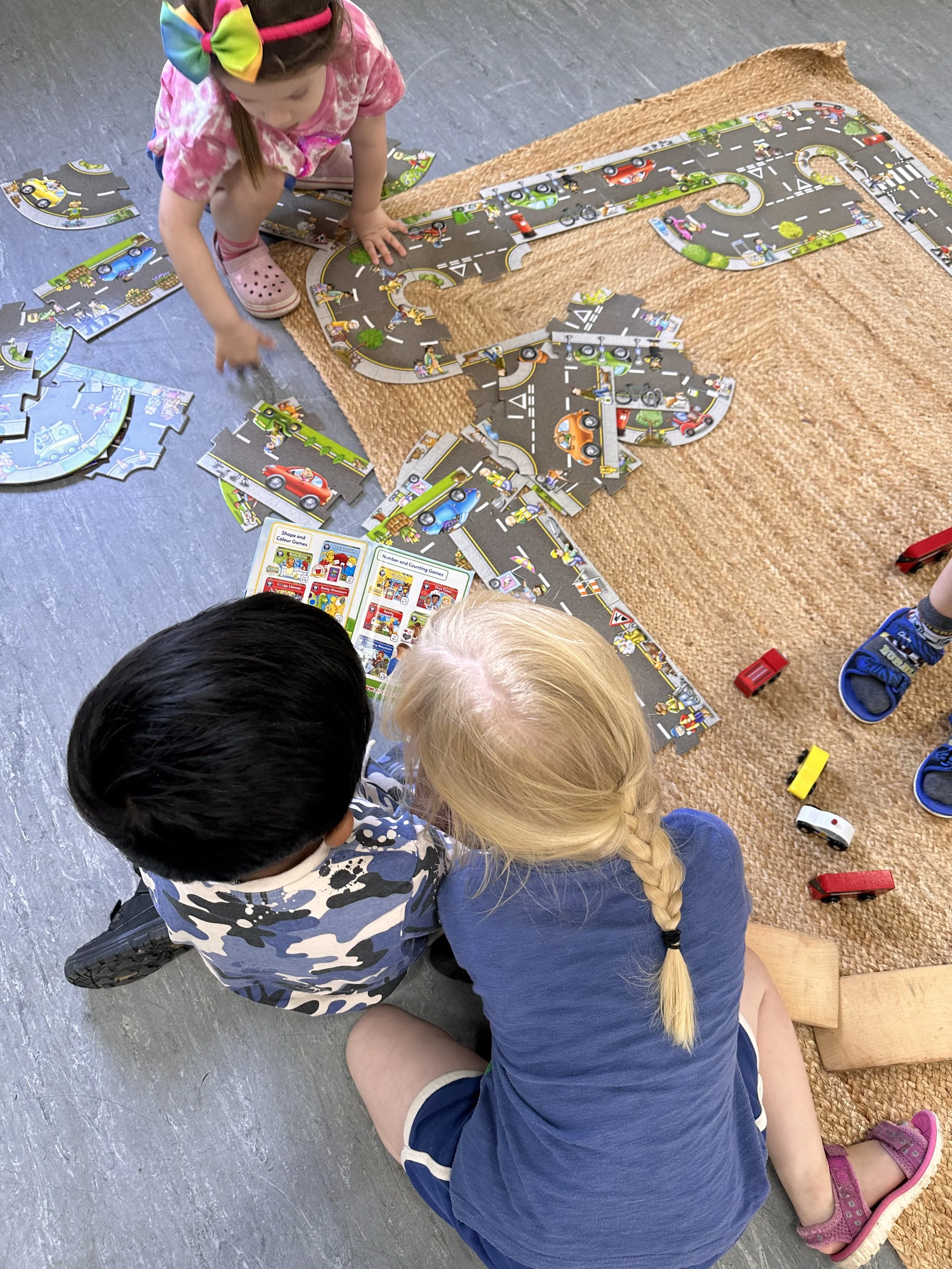 We made a giant road using the ‘instructions’. We directed one another on where each piece should go and worked together to make it super long!