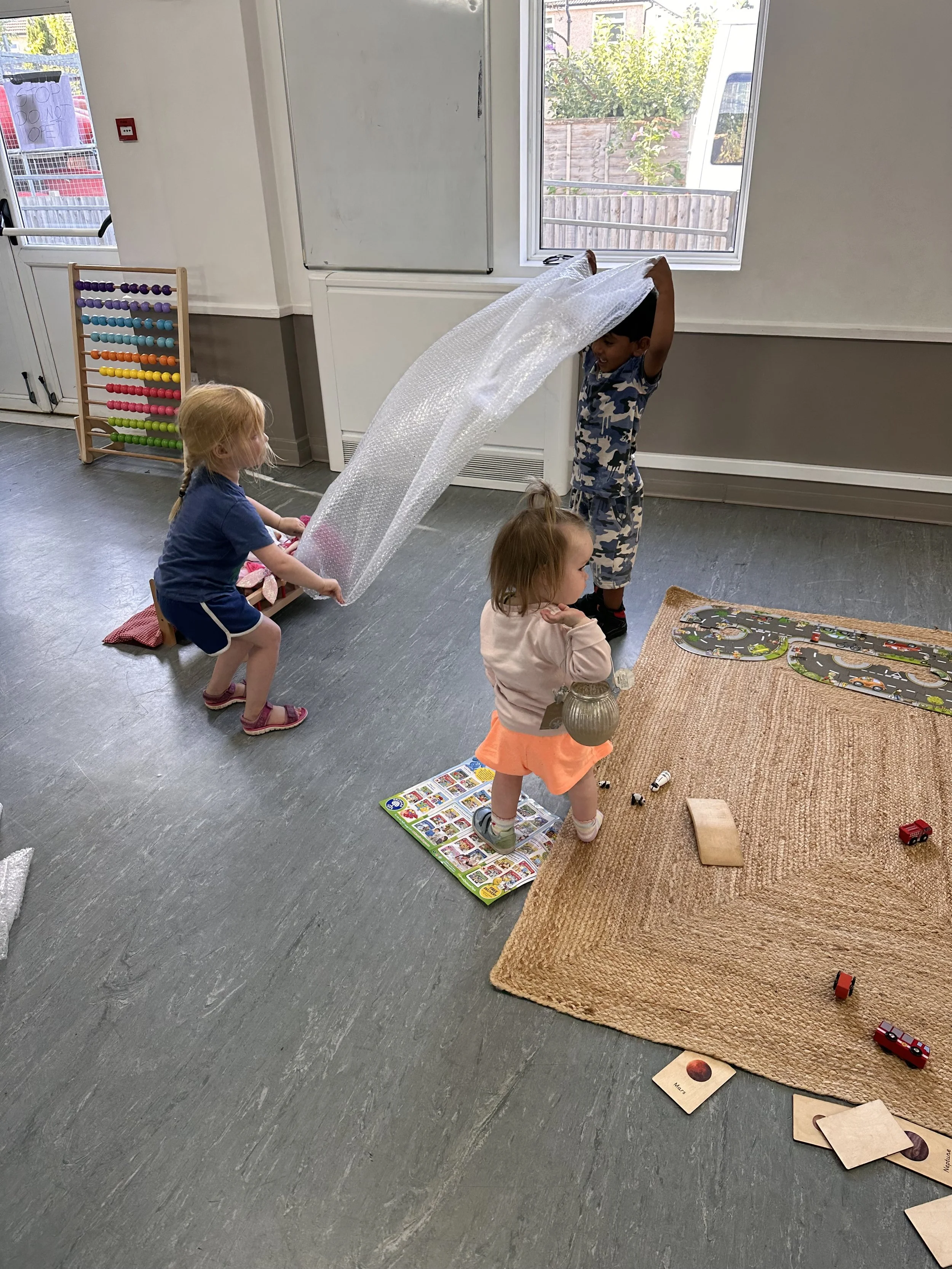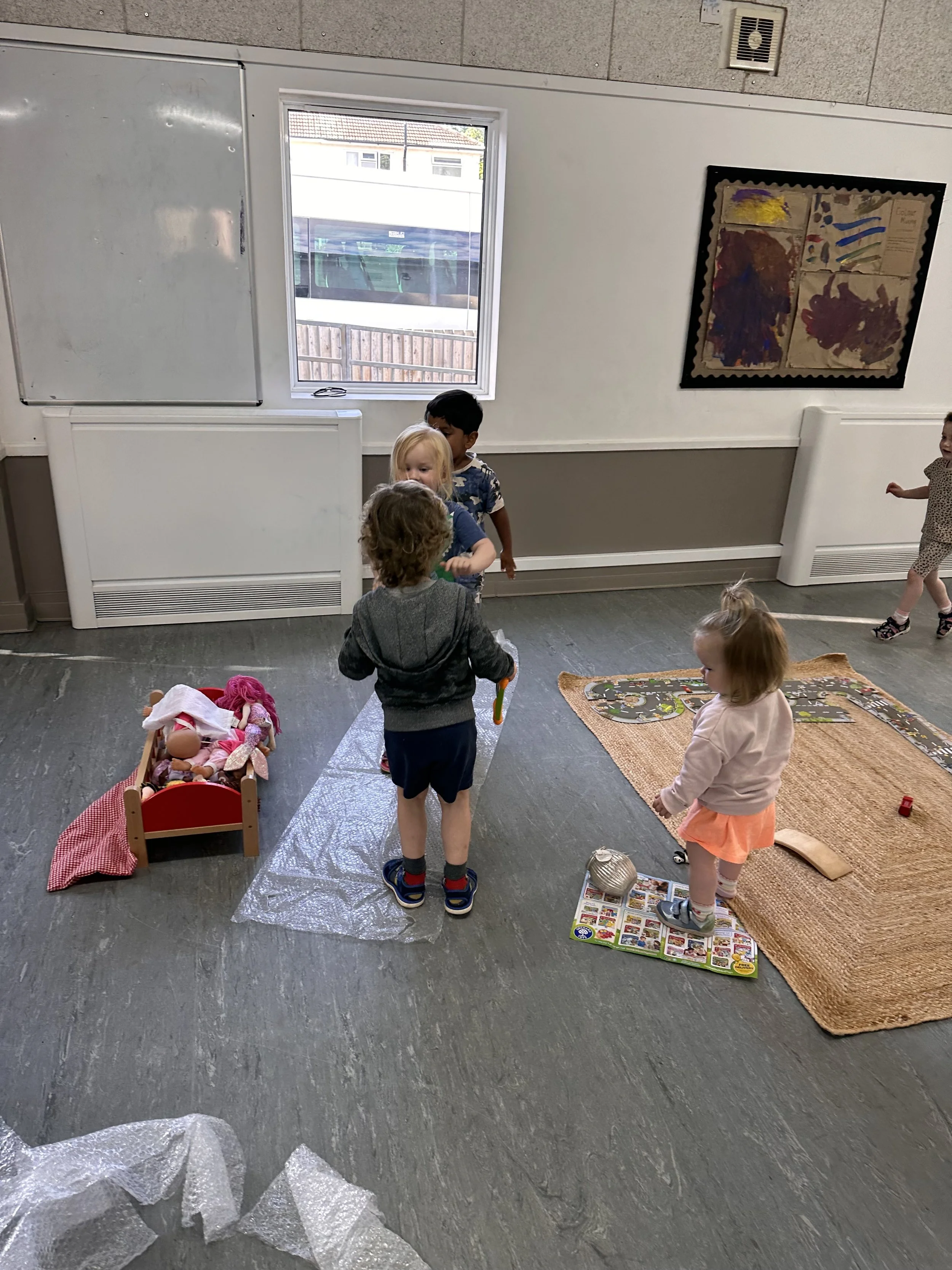 One of our favourite activities today was moving our bodies on the bubble wrap! We loved hearing the bubbles pop and wafting it around the room.