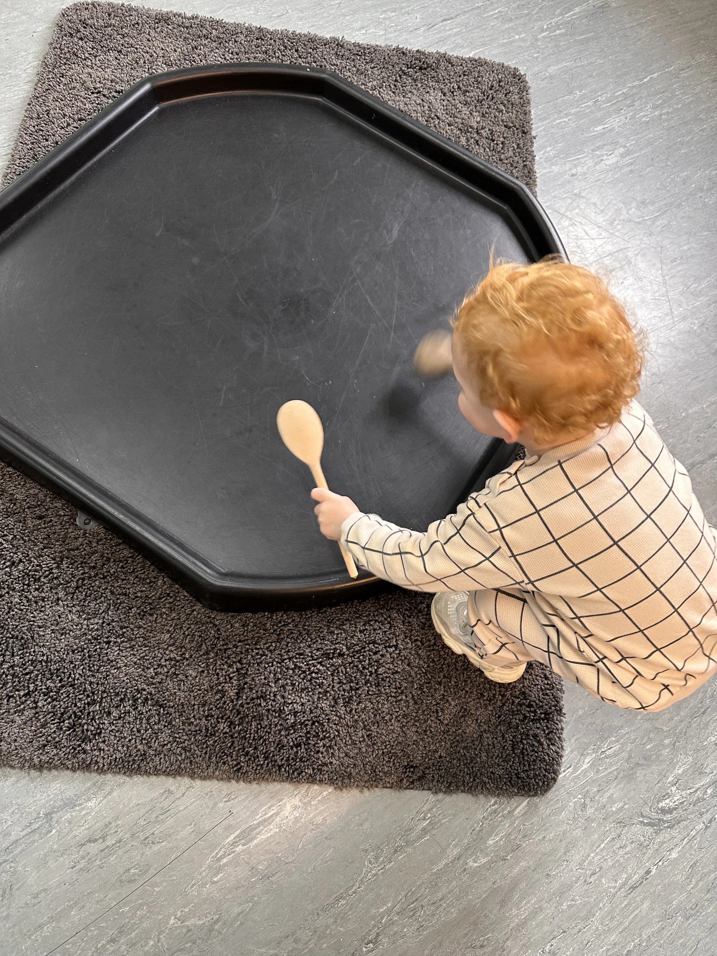 We added a few cornflakes to our cookery and the younger children loved using spoons and spice shakers to move them around the pan. We loved the crunchy noise they made!