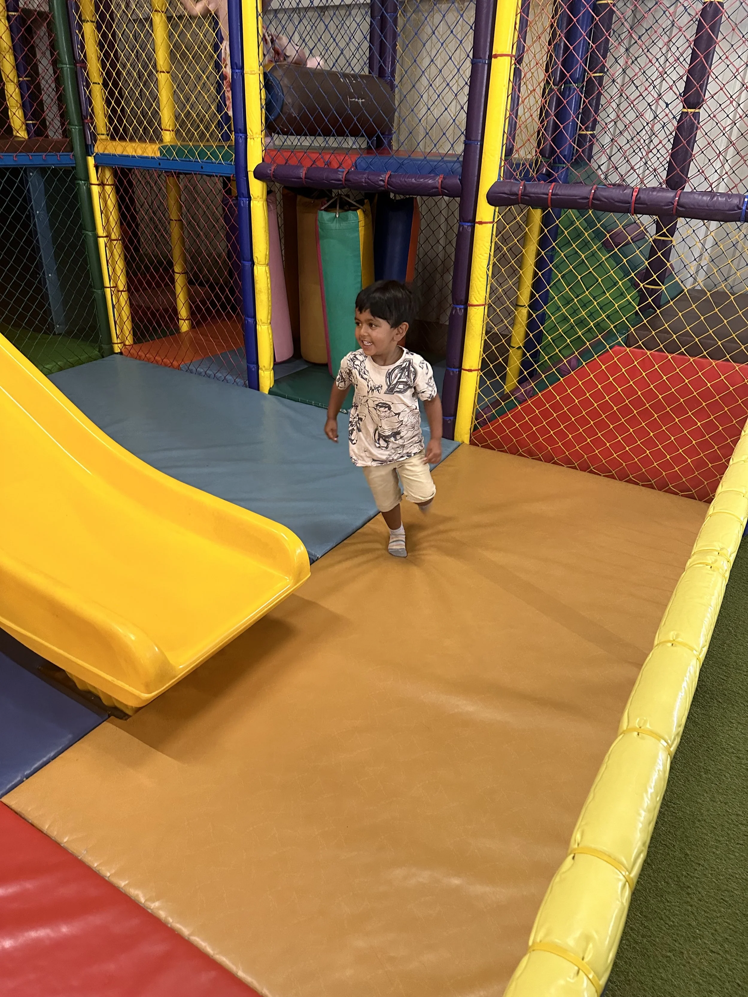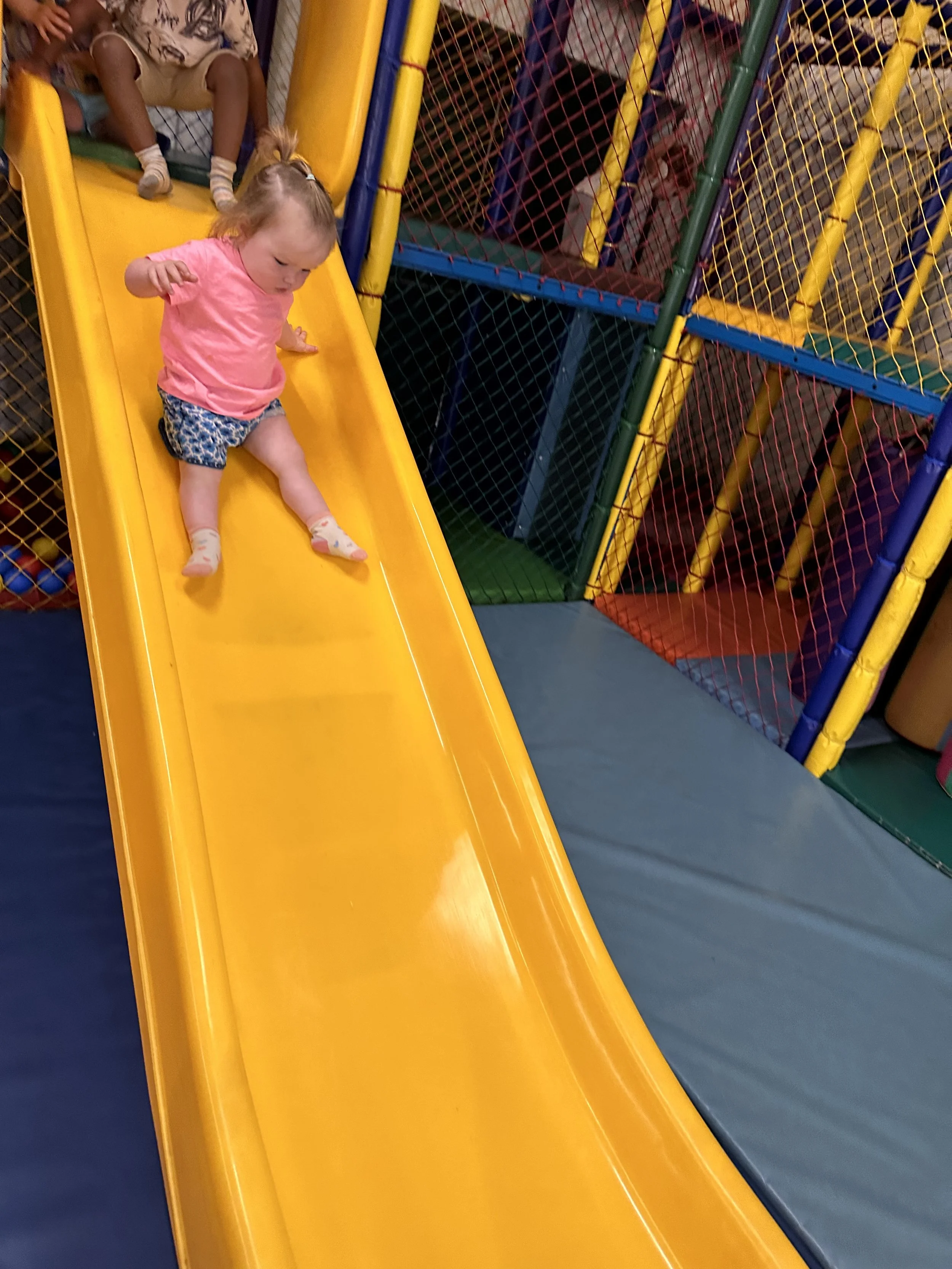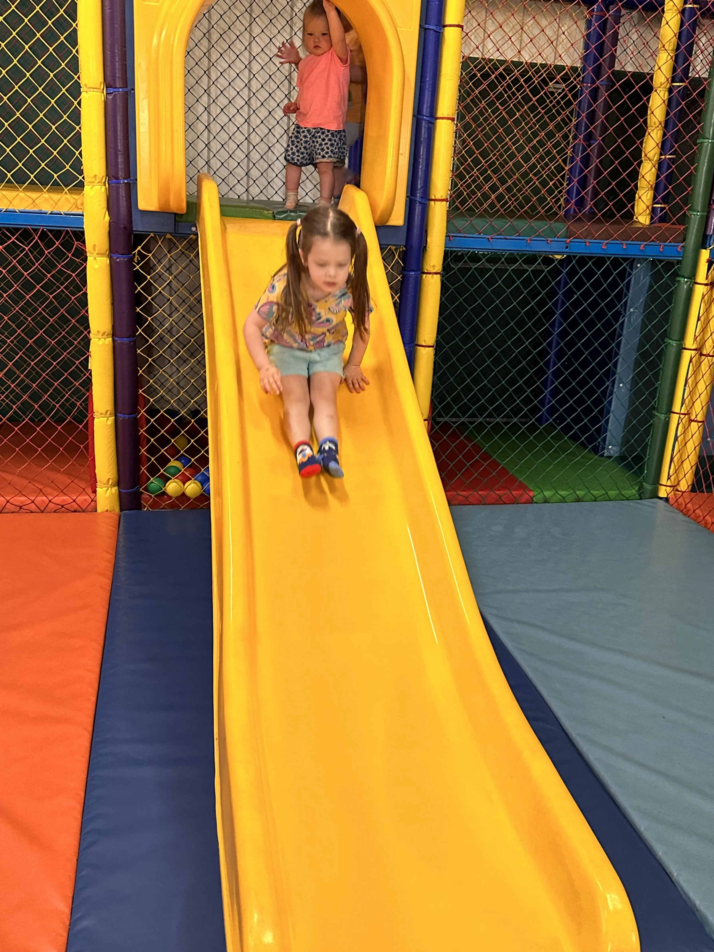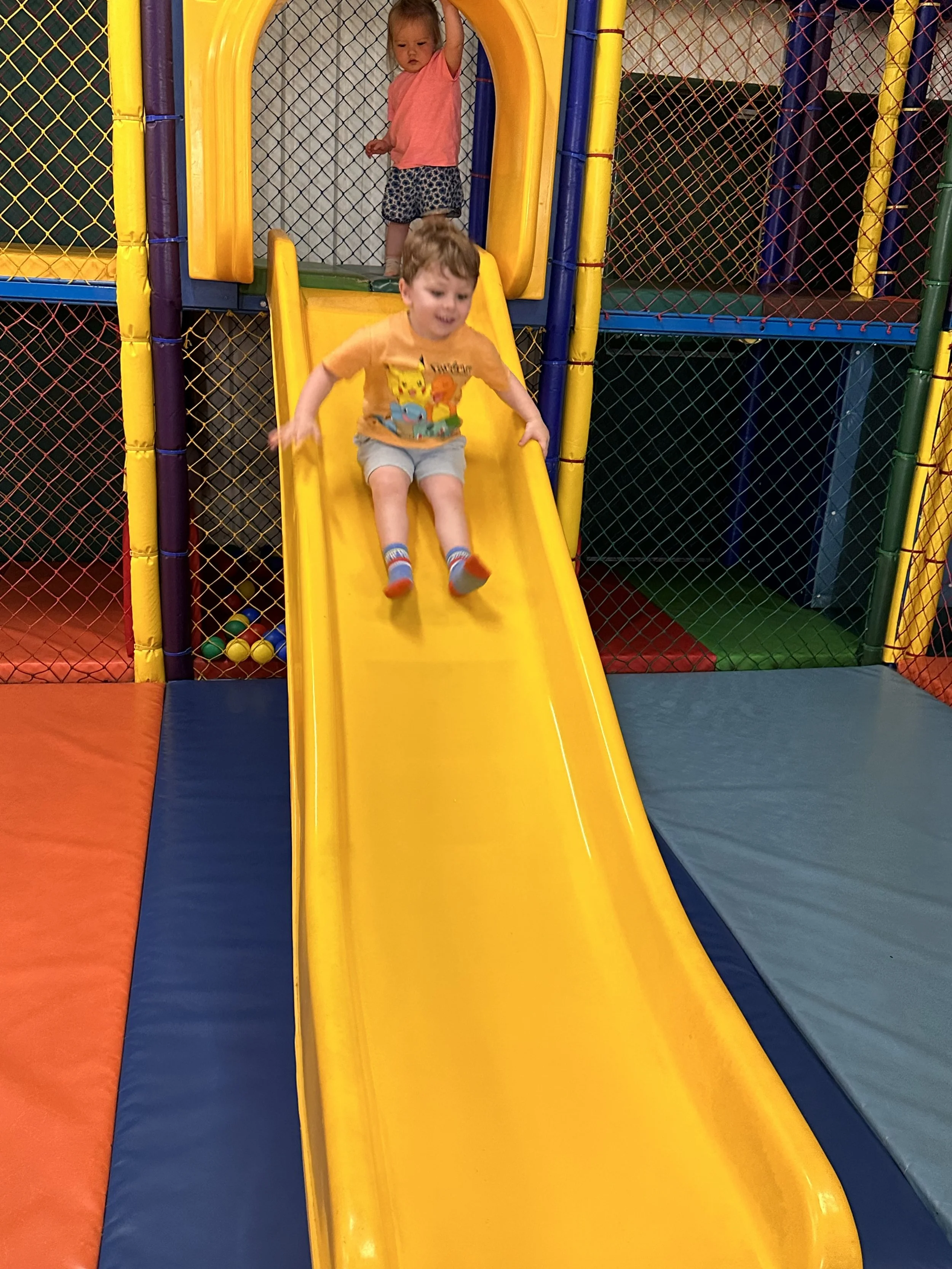 it was lovely and quiet - we almost had the place to ourselves so we went crazy! Jumping and running in the ball pit and rushing down the slide so many times.