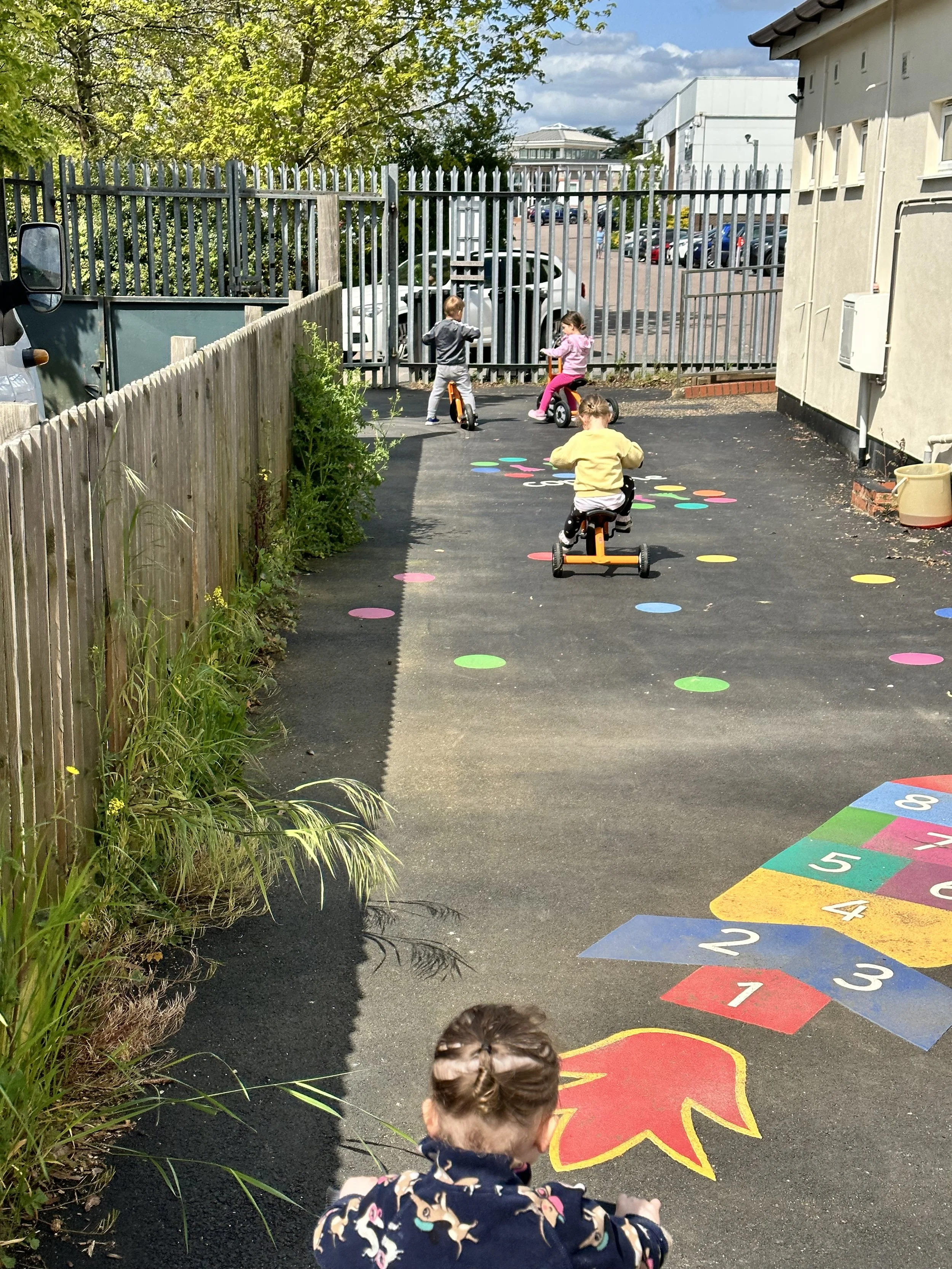 Of course, the best thing about new nursery is the bikes, scooters and car in the second garden. It’s so lovely to have so much outdoor space right outside!