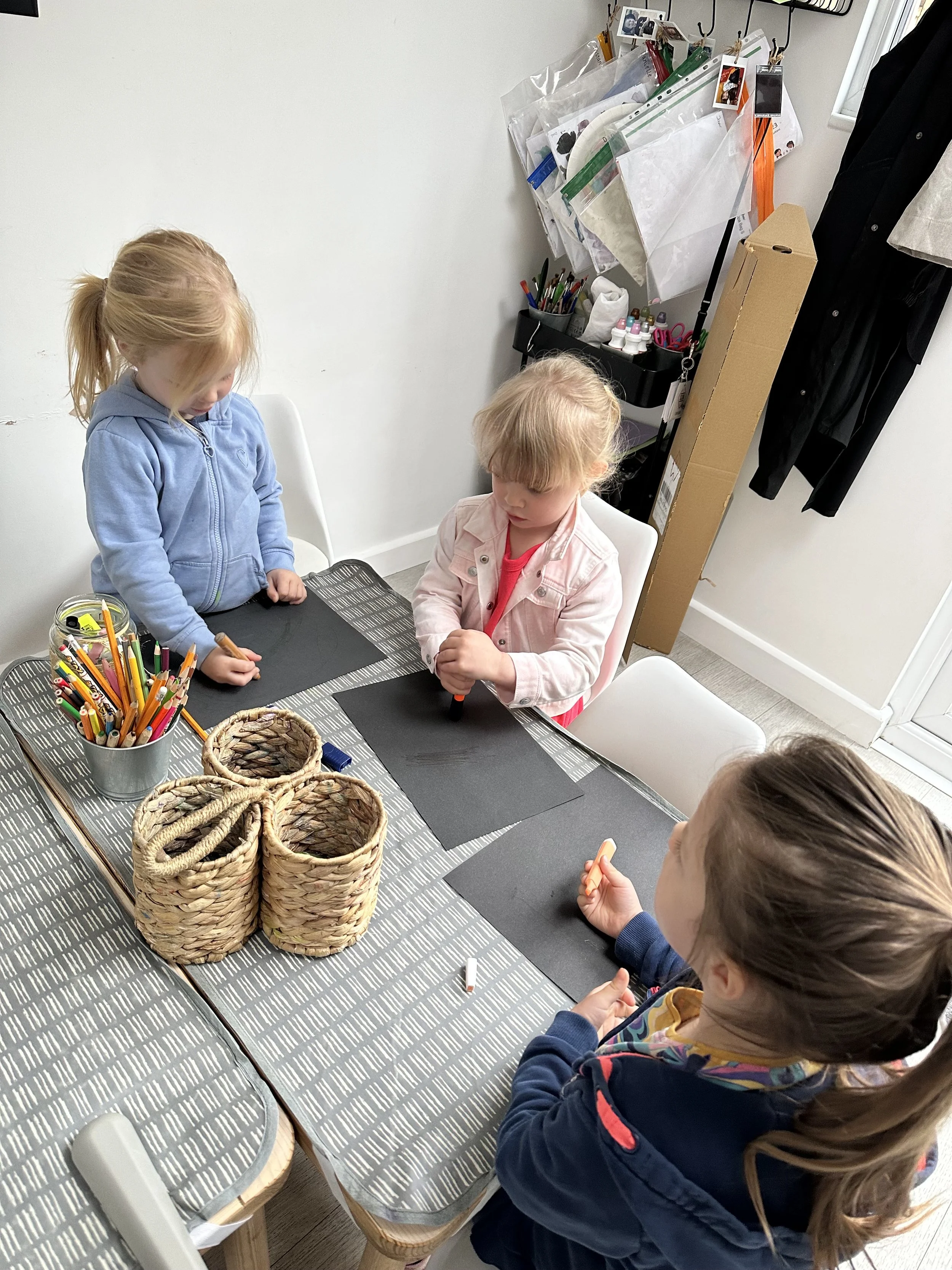 We started our morning with some pre-breakfast mark making and decided we would like to do some painting later.