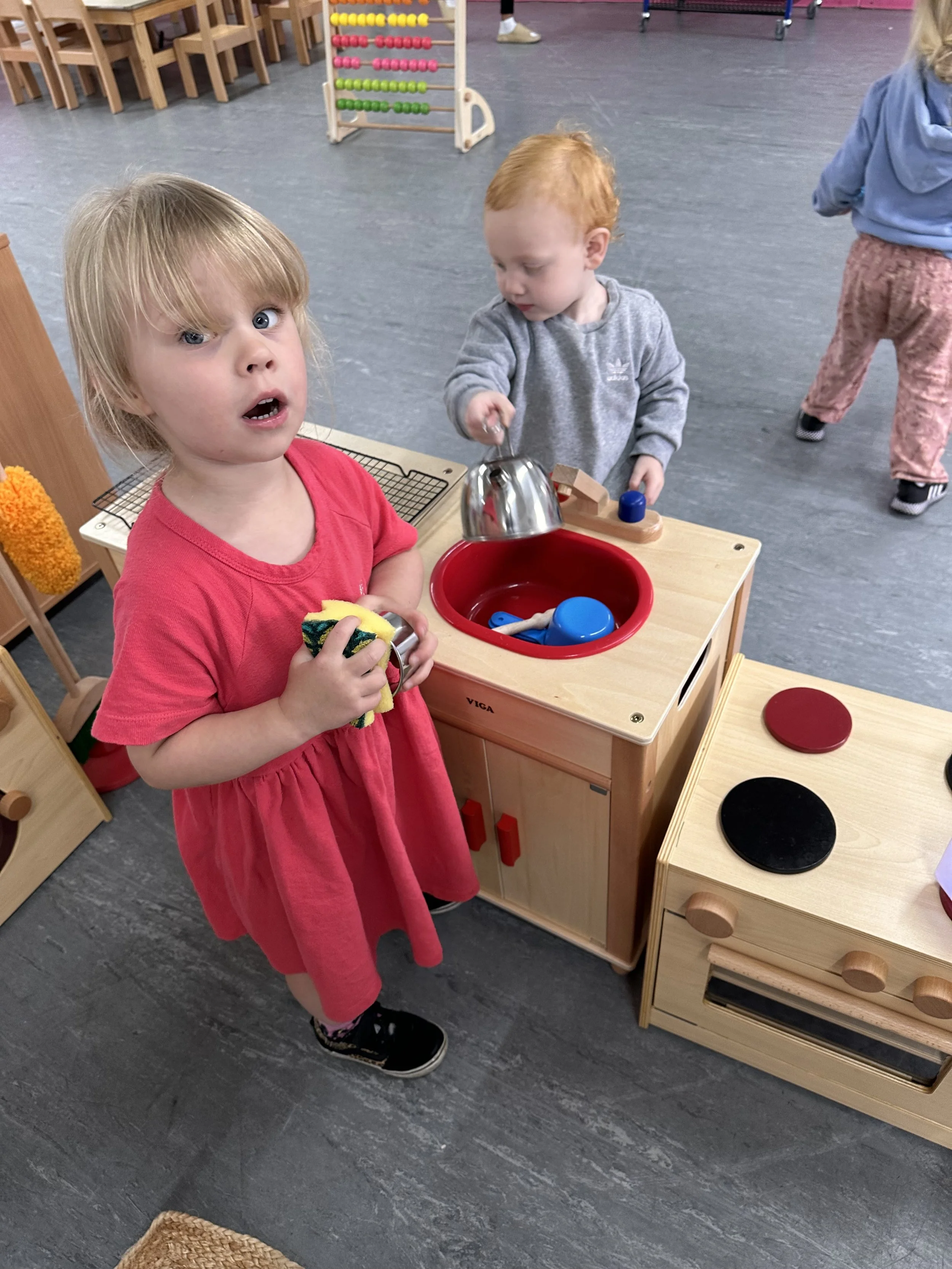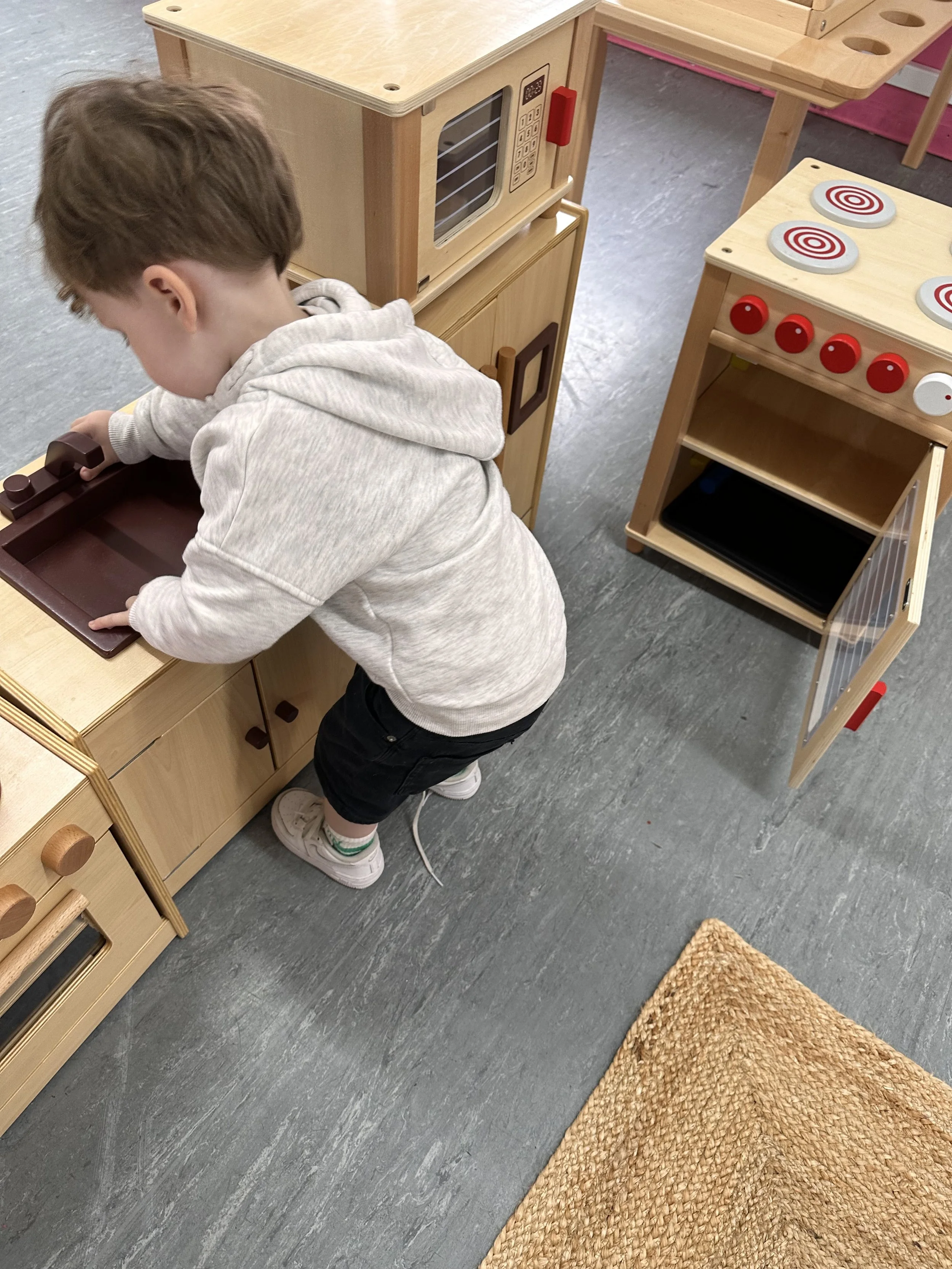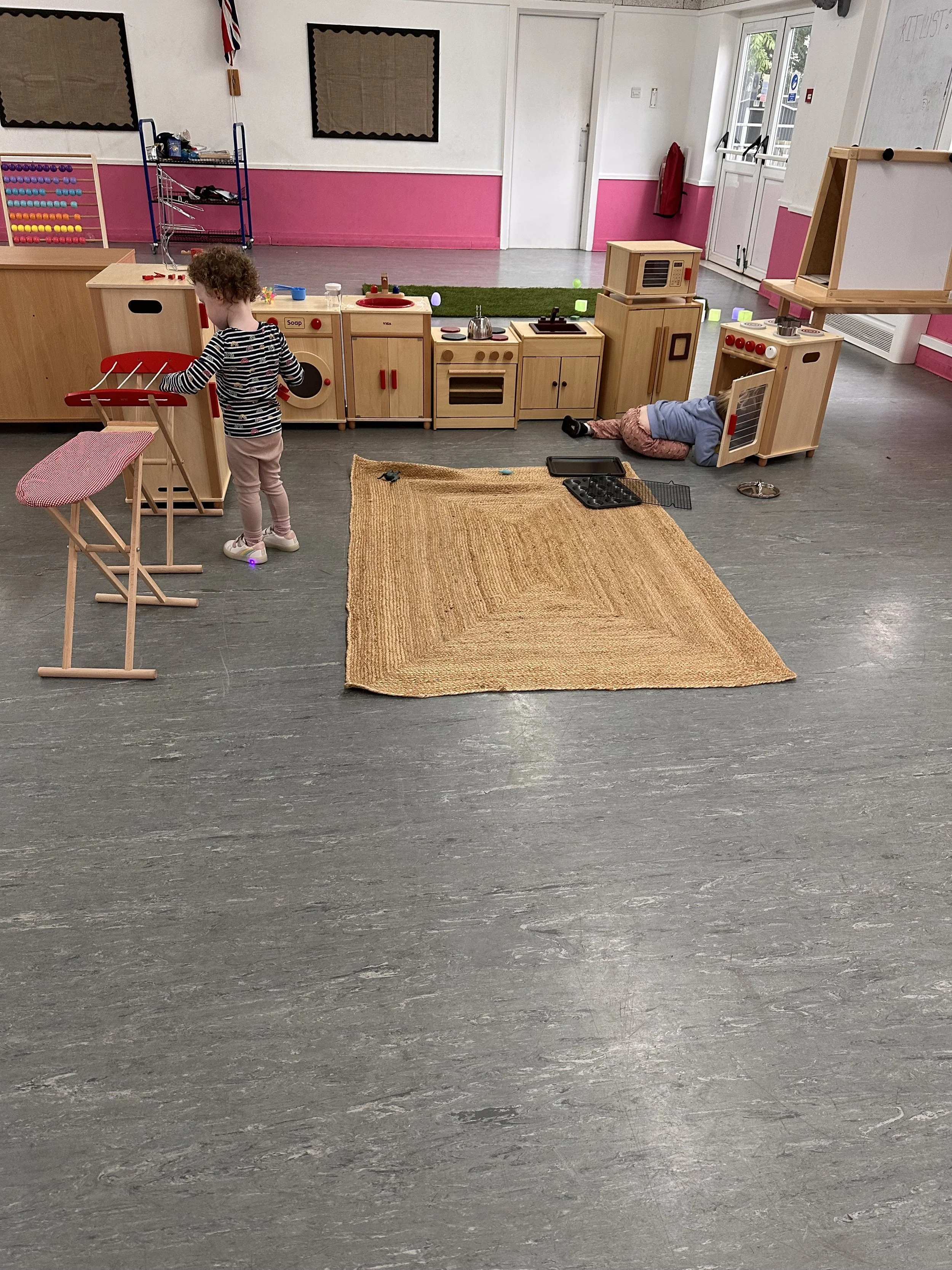 This morning we set up our nursery a little differently, splitting the room in half and creating some areas. It was so rainy we got lots of toys out to explore!