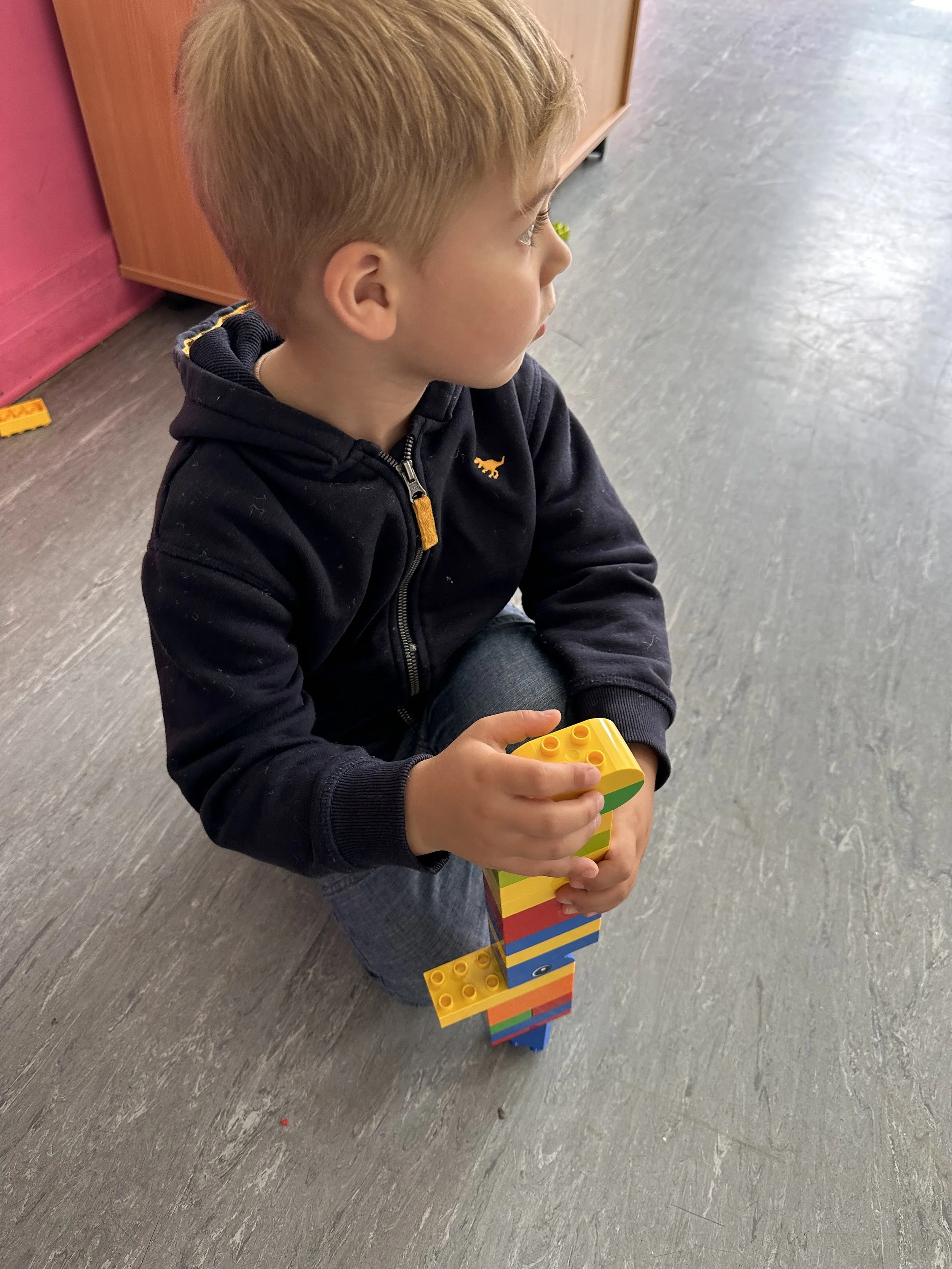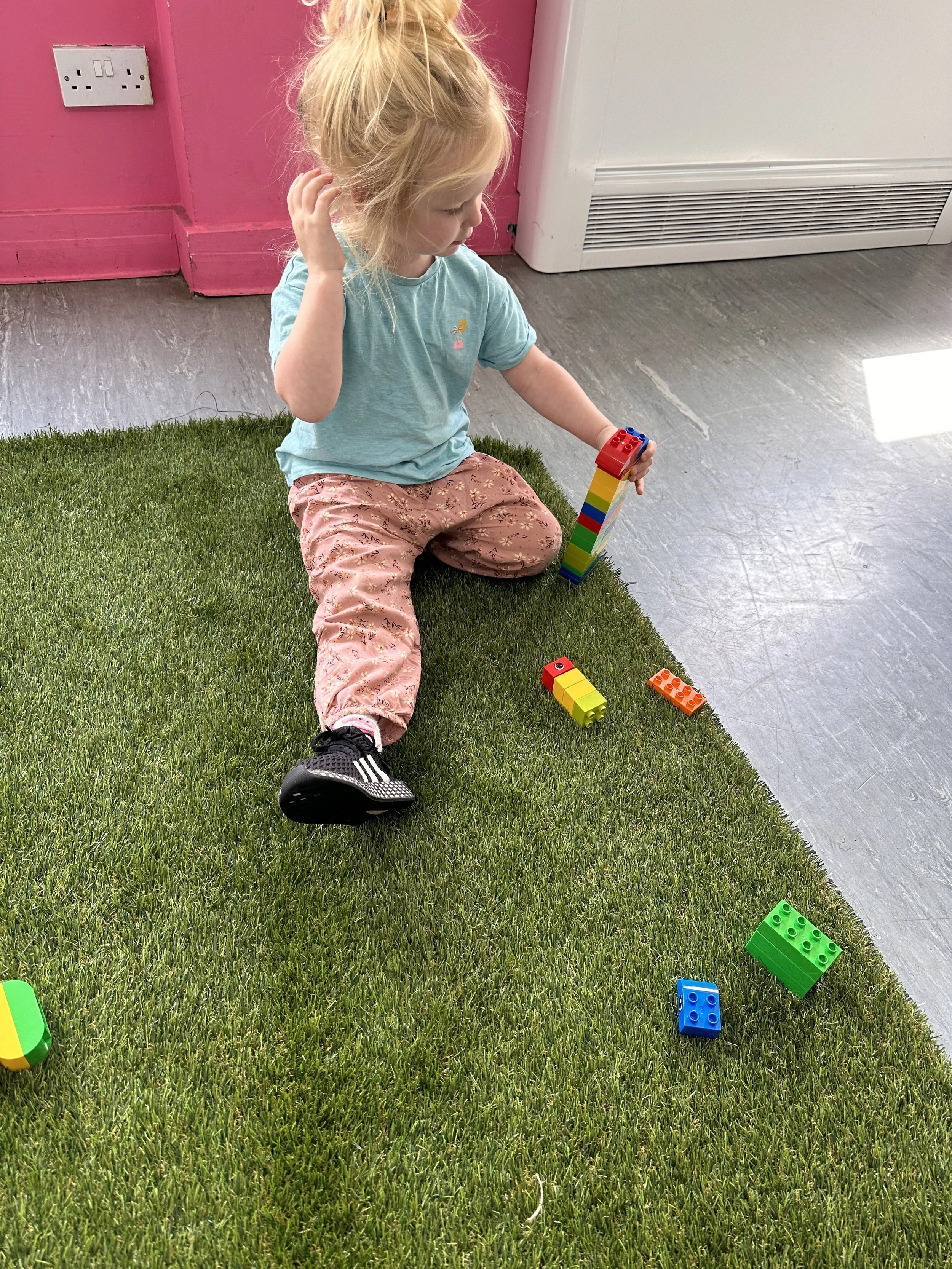 Construction play was a big theme of the day! We used Lego to build towers as tall as ourselves, measuring each others height. Issy stacked the light up blocks and Zara made wooden block soup!